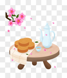 卡通手绘桂花树和月饼元素