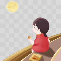 中秋节之手绘卡通女孩抱着月饼奔跑