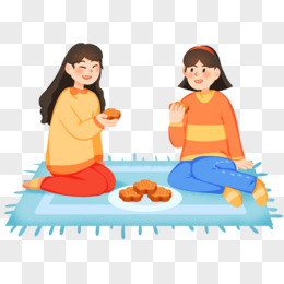 手绘卡通闺蜜朋友一起吃月饼免抠素材