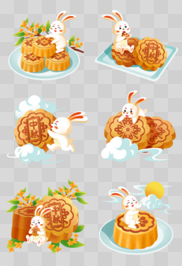 卡通手绘可爱不同月份兔兔场景系列之九月拿着月饼元素