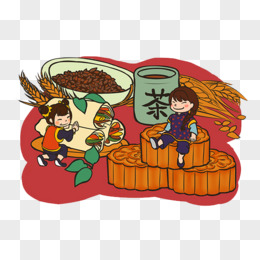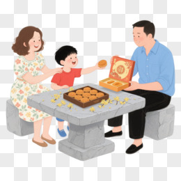 卡通手绘一家人吃月饼免抠元素