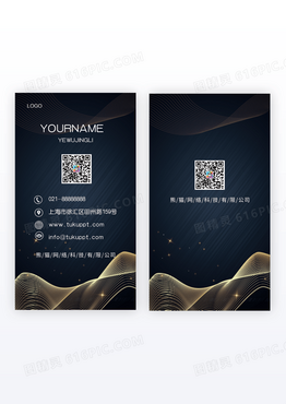 黑金色曲线简约黑山水水墨中式山水背景墙竖版名片模版