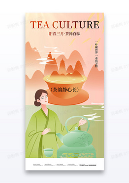 手绘国潮中式茶具瀑布创意微景观免抠元素