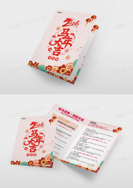 浅底新中式国潮粉色2026马年大吉烫金活动节目单