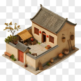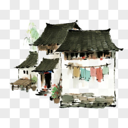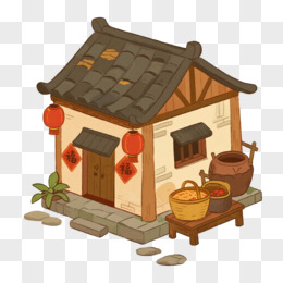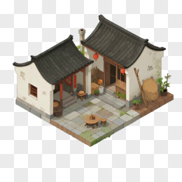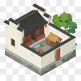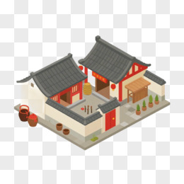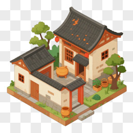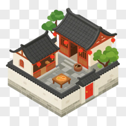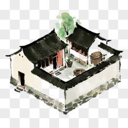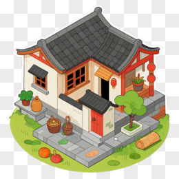 手绘卡通中国风古代建筑瓦片中式建筑屋檐