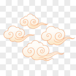 米白祥云浅橙勾线漂浮元素
