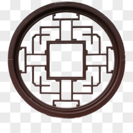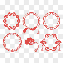 红色中式圆形边框装饰图案