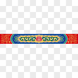 手绘免抠蒙古长条花纹图案装饰元素