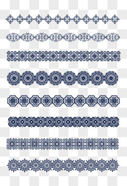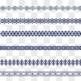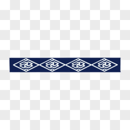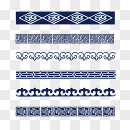 一组手绘幽夜青色蒙古长条花纹元素