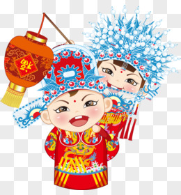 手绘卡通婚礼小人中式