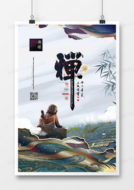 新中式禅意佛文化水墨中国风海报