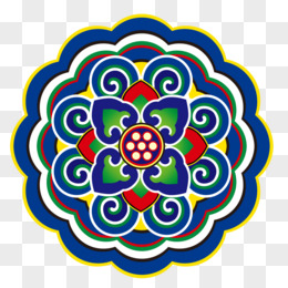 手绘免抠蒙古长条花纹图案装饰元素
