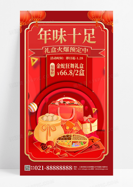红色国潮风格年味热销中2025年夜饭礼盒手机文案海报