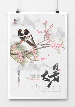 新中式水墨画二十四节气大暑节气海报