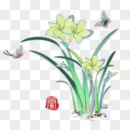 手绘水墨画兰花免抠元素