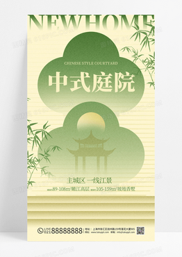 手绘国潮金线青山绿水凉亭大雁景观元素