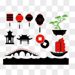 红色中式建筑装饰可作标签