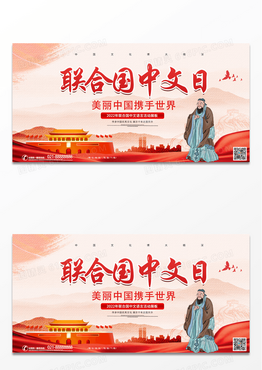大气红色联合国中文日美丽中国携手世界展板中文语言日