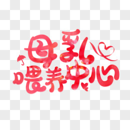 红色卡通母乳喂养中心艺术字