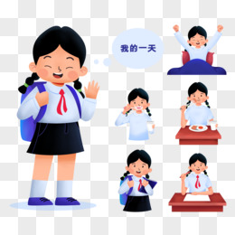 手绘卡通中学生的一天的生活免抠元素