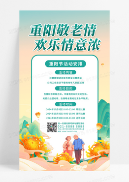 简约橙黄色国潮边框重阳敬老情欢乐情意浓手机海报重阳节
