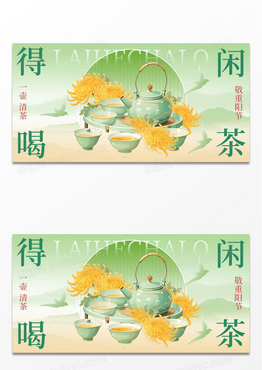 绿色清新2025重阳节品茶赏花活动主视觉背景板