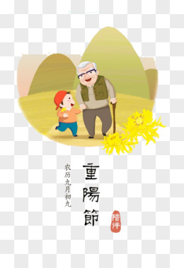 重阳节卡通手绘老人免扣元素