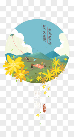 手绘卡通插画风菊花酒重阳糕菊花组合插画免抠元素