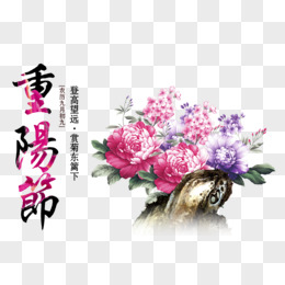 重阳节山水菊花手绘元素