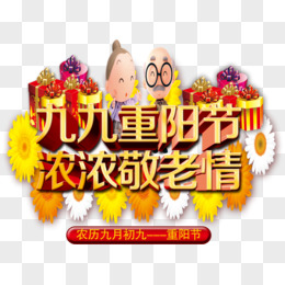 艺术字菊花太阳重阳思故免抠元素