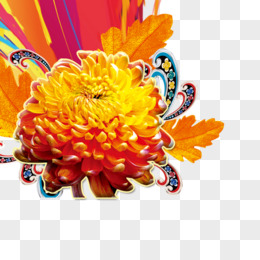 中式夕阳菊花边框免抠元素