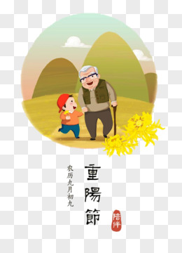 手绘卡通插画风菊花酒重阳糕菊花组合插画免抠元素