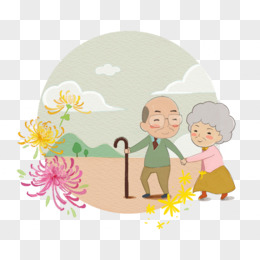 手绘一对可爱的老爷爷和老奶奶免抠元素