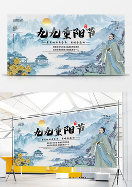 水墨大气中国风重阳节展板设计