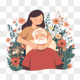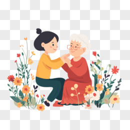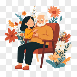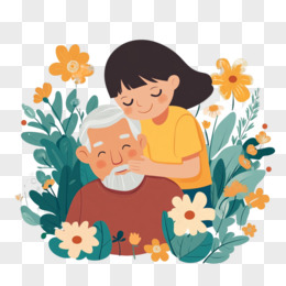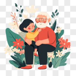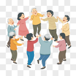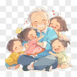 儿童水彩画一个老爷爷和一群小朋友免抠元素