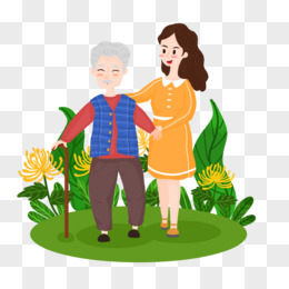 手绘扁平老人坐轮椅抱婴儿免抠元素