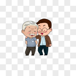 手绘卡通一家人陪老人拍合家福留念免抠元素