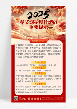 红色2025春节烟花爆竹燃放重要提示手机宣传海报