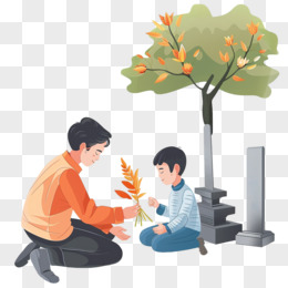 扫墓祭祀插画免抠元素