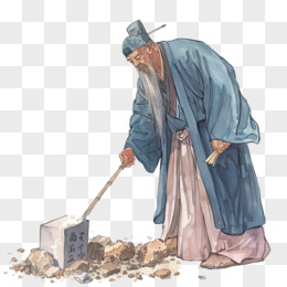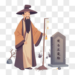 老人扫墓祭祀的插画元素