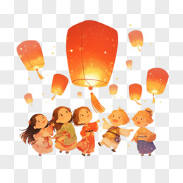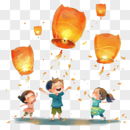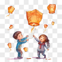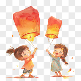 小朋友放孔明灯免抠元素