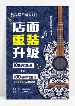 蓝色简约店面重装升级装修升级海报设计