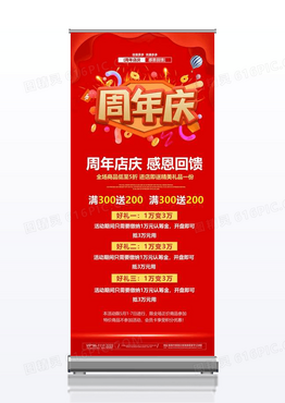 红色周年店庆感恩回馈促销活动宣传展架易拉宝店庆活动展架