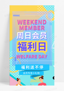 彩色几何卡通周日会员日福利送不停手机长图服装类扁平化长图