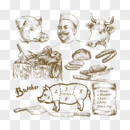 卡通手绘杀猪肉猪肉菜红烧香菇肉块元素