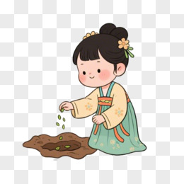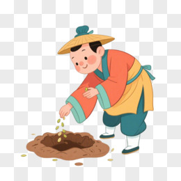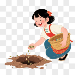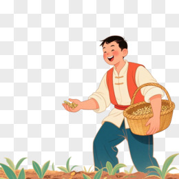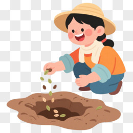 卡通插画风播种播种撒种子种植种庄稼种地免抠元素