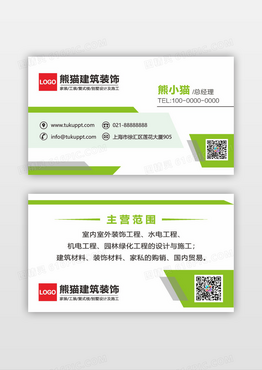 绿色装饰名片室内装修进口材料简约名片设计模板