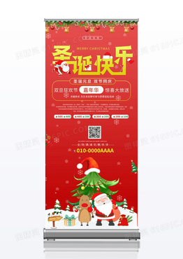 圣诞快乐嘉年华圣诞树红色宣传展架