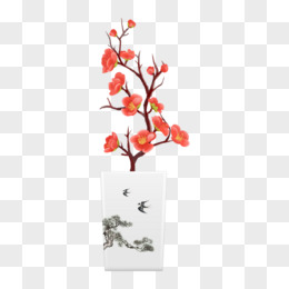 手绘矢量国画中式花瓶素材