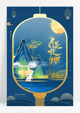 创意中国风月亮玉兔中秋节剪纸海报